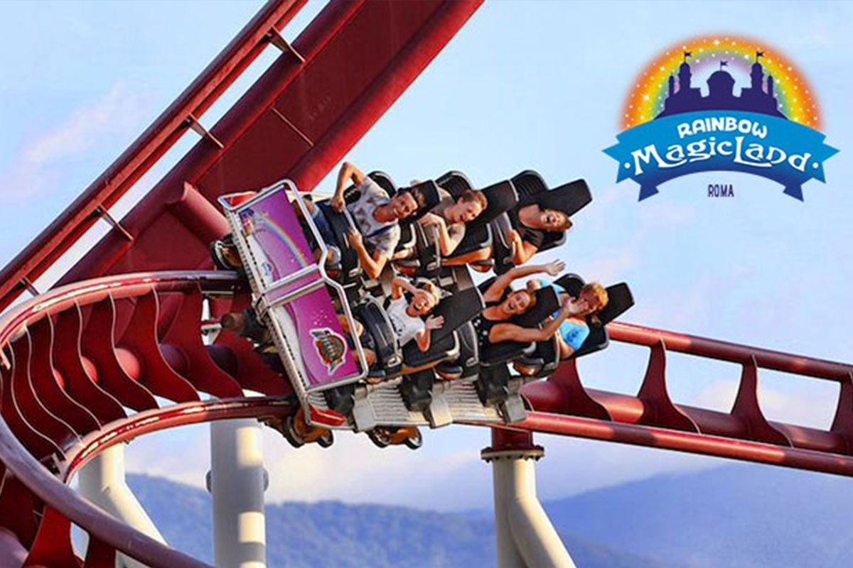 Rainbow MagicLand is an amusement park in Lazio, located in the town of Valmontone. Peculiarity of the park is the large central lake, around which are arranged all 36 attractions, stores, dining and show areas that make up the facility.